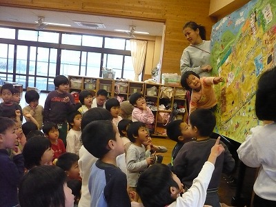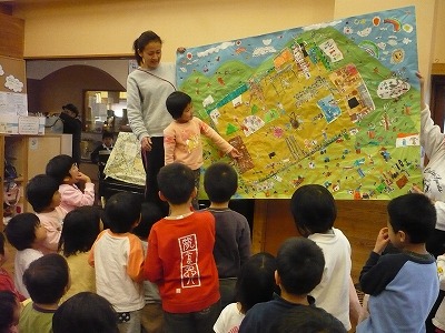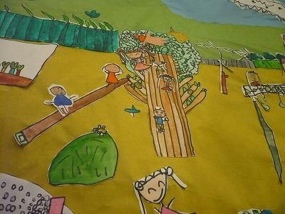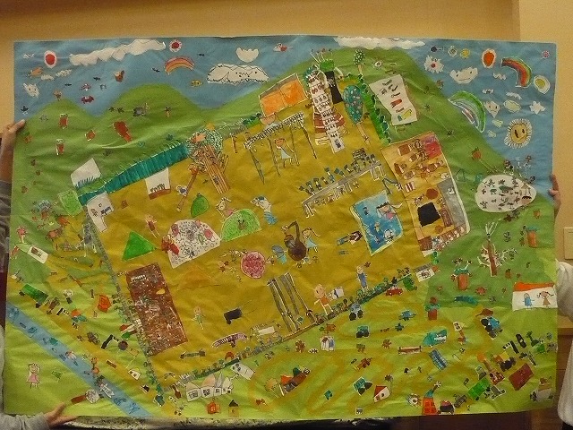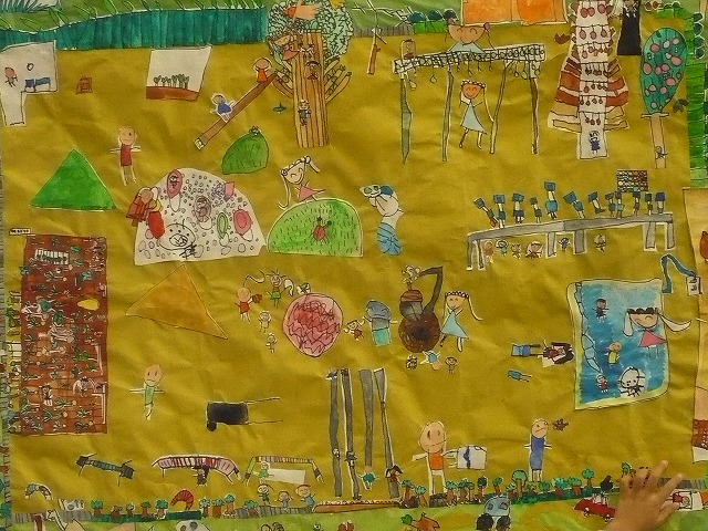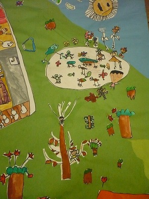 お山の保育園を描く!!日々の生活が次々あふれ、描かれていきました。20人みんなで、想いをひとつにして創りました!
