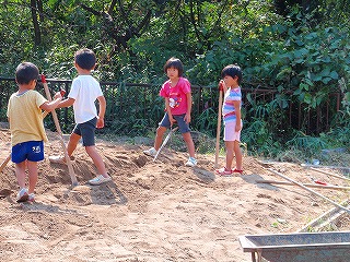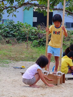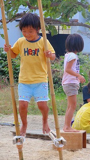 畑・縄網・竹馬と・・・次!の課題を通じていっそう深まる年長さんです。