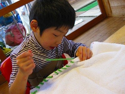 「何本できたかな〜?・・61・62・63・・・・・。まだまだや〜!もっと作るねん」なんと、保育園中のみんなの120本をつくりました〜!!