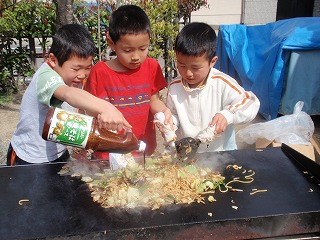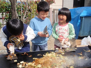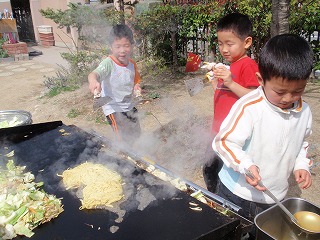 この時期になると給食室の先生が年長の子どもたち一人ひとりに好きなメニュー・苦手な食べ物を聞き取った献立になります。その1つに焼きそばがありました。