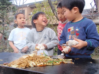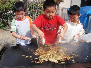 手つきはさすがだなって思いますが、それ以上に1つ1つをじっくりと感じ楽しむもみの木の皆。“思っていたより難しいな〜もう少し焼いた方がいいな〜”と、各グループの仕上げ方や味も様々で、それらを大人・子どもたちで味わいながら過ごしましたよ。