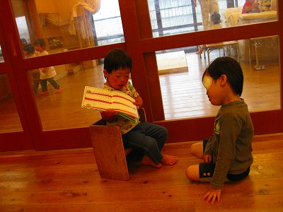 年長さんが楽しくもじーっくりの読み聞かせ。落ち着いた雰囲気に「何読んでもらってるのかな〜?」と、事務所から、のぞいてみると・・・沖縄の「あんぱるゆぬんた」のお話でした。沖縄の楽しくも強くしっかりとした生き様を問う、読み聞かせです。その中の歌もたくさんあるので・・・きっと、今日このお話に出会ったもみのきさん、素敵な歌とも出会っていくのでしょうね。日々の遊びや経験を重ねながら、文化を深めていく年長児の保育です。