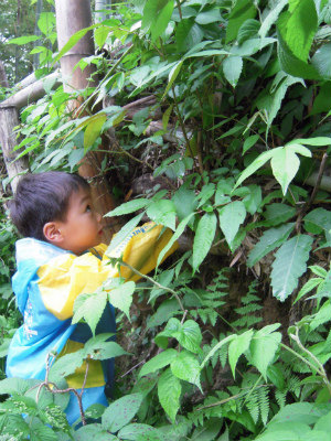 また、道なき道を歩きイチゴ探し、自然とみんなー!手伝ってー!と仲間と知恵を出し合い