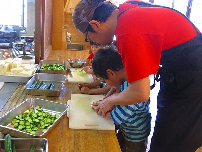 給食室の西山先生に教えてもらって、少しドキドキしながらも、真剣さとうれしさが伝わってくる、もみのきさんの毎日ですよ。