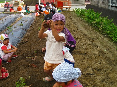 ご近所の徳田さん畑でおいも堀り!さあ!大きいの出てくるかなー?みんなで土をかきわけて、がんばるよ!!