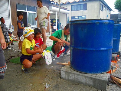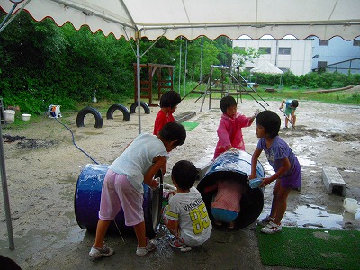 がんばった後は・・・水シャワーで汗を流して、そのまま、泥んこ遊びに夢中の今日でしたよ!!ほっこりしたひとときでした。