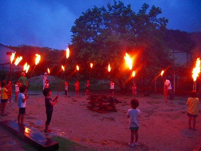 今日は・・・お昼ごはんを食べてお腹いっぱい元気がでたあとで、昼寝までのひととき、キャンプファイヤーのトーチづくりをしましたよ。