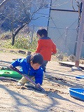春の西山。年長さんは畑仕事の毎日です!あこがれのクワを手に“働くみつばちっこ”真っ黒の、いい土にするでー!