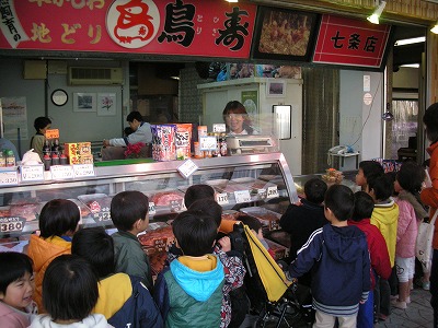 4歳児ぽぷらさん。はじめてのお泊り保育にむけて・・・この日は、晩御飯の材料を買いに七条商店街へ行きましたよ。「どれにしようかなー?」