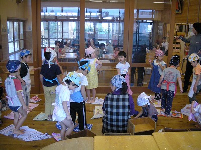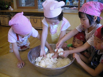 園に帰ってきて、さっそく翌日のお泊りにむけての下準備。ぽぷらさんは「手打ちうどん」をつくるよ!(もみのきさんは手巻き寿司づくり)